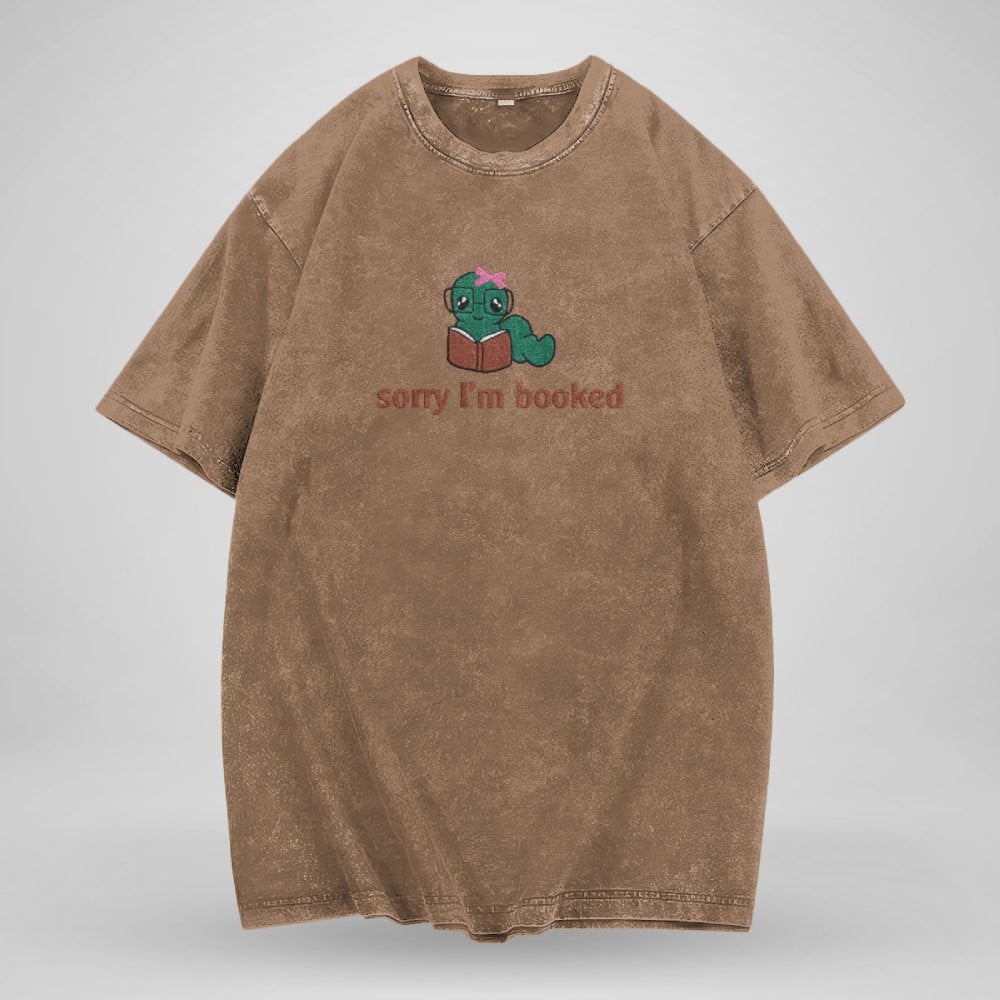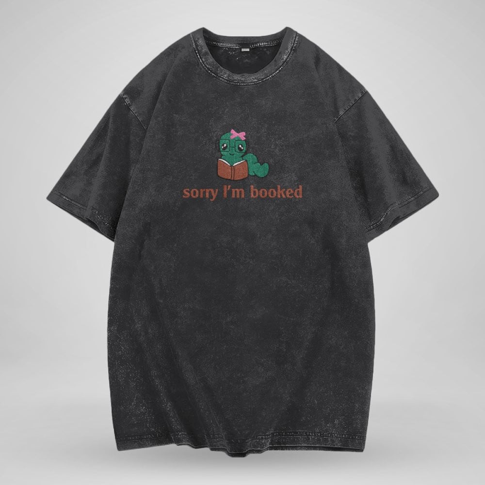 Bookworm - Sorry I'm Booked Embroidered Washed Shirt For Book Lovers