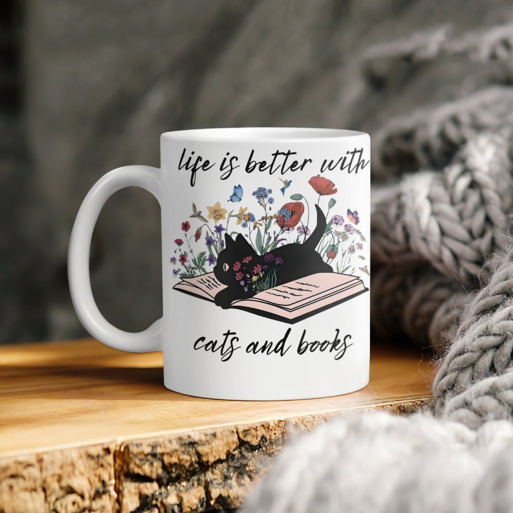 Life Is Better With Cats and Books Mug For Bookaholic